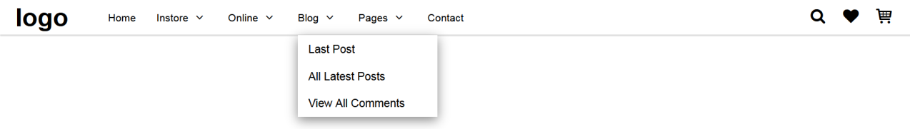 From a fully functional and responsive Navbar, I wanted the ability to have any HTML inside a submenu – creating what is known as a "Megamenu". Here's what my Navbar looks like. The menu links "Instore" and "Online" are destined to become HTML submenus. The image below shows a regular submenu.