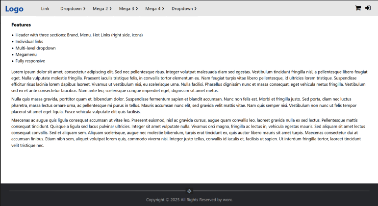 Three sections in the navbar: Brand, Menu, Hot Links (like cart icon, etc)