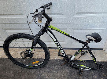 What I didn't count on was the changed dimensions. The 52v 22ah is longer and higher ... it just won't fit in the space of the full suspension donor mountain bike (or any part of it, and a rear rack is out of the question). So, I had to go to plan B ... a front suspension mountain bike with hardtail. Would be a bit of a rougher ride, but the front suspension is a high end unit and I think I can make this work. The down tube, top tube, and seat tube geometry is excellent for an ebike build. Lots of space for the battery and controller.