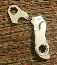 A new glitch ... let me explain. This CCM Incline hardtail was damaged during riding. It belonged one oldest grandson, youngest grandson was using it at the time. The rear wheel was damaged and came off. As the frame came to rest on the road, the rear Shimano Altus derailler was damaged and so was the chain. What I didn't initially notice is that the derailler hanger was broken off. Part stayed with the frame, part stayed with the derailler. The only good thing about this is that the hanger is a replaceable unit (see at right) ... I just have to find the right part and resume the build. A part is on order from Amazon.