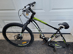 I ended up with three bikes. A "Ross" 21-speed mountain bike, a "Kranked" 21-speed mountain bike, and a CCM Apex 24-speed mountain bike. The Ross and Kranked bikes needed work - lots of work and lots of parts. That helped me get back into repairs ... it's been quite a few years since I fixed and maintained my own bike. At that point, I didn't really know which of these three bikes would end up being the "donor" bike for a new ebike build. As it turns out, none of them had the proper geometry as an ebike base.