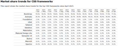 The market share numbers surprised me. Some of the packages mentioned in the market share report surprise me even more. You just can't ignore the popularity, wide base of support, and available resources that using Bootstrap opens up. The chart at the top right of this article shows the market share numbers ... and it's really interesting that the display chart to support that spreadsheet doesn't even display any framework with less than 1% market share. That leaves only Bootstrap, Animate, and Foundation on the chart. (and, I don't believe Animate is a full CSS framework - although I could be wrong).