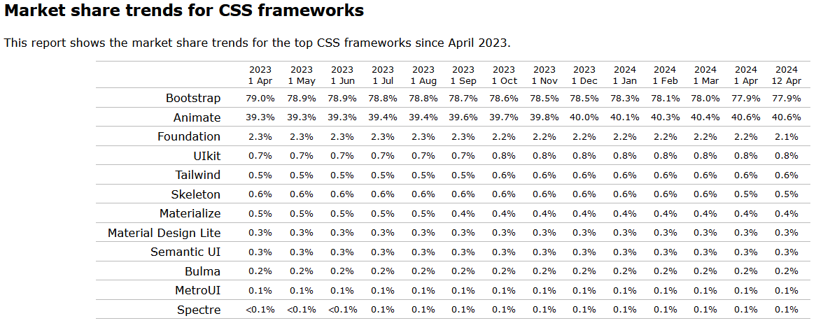 - Bulma with less than 1% market share (0.2%)