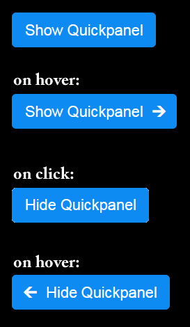 I got it working very nicely. When you hover over the Show Quickpanel button, a really nice arrow (unicode object) is eased into position over a 1s transition...