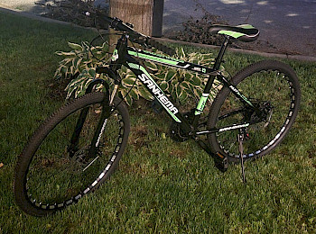 - CCM Incline, black/green, front suspension. Based on a change of plans. The new battery would have fit perfectly on the down tube. This bike had a bit more unexpected damage though. I ended up replacing the derailleur hanger and refitting the rear wheel hangers.