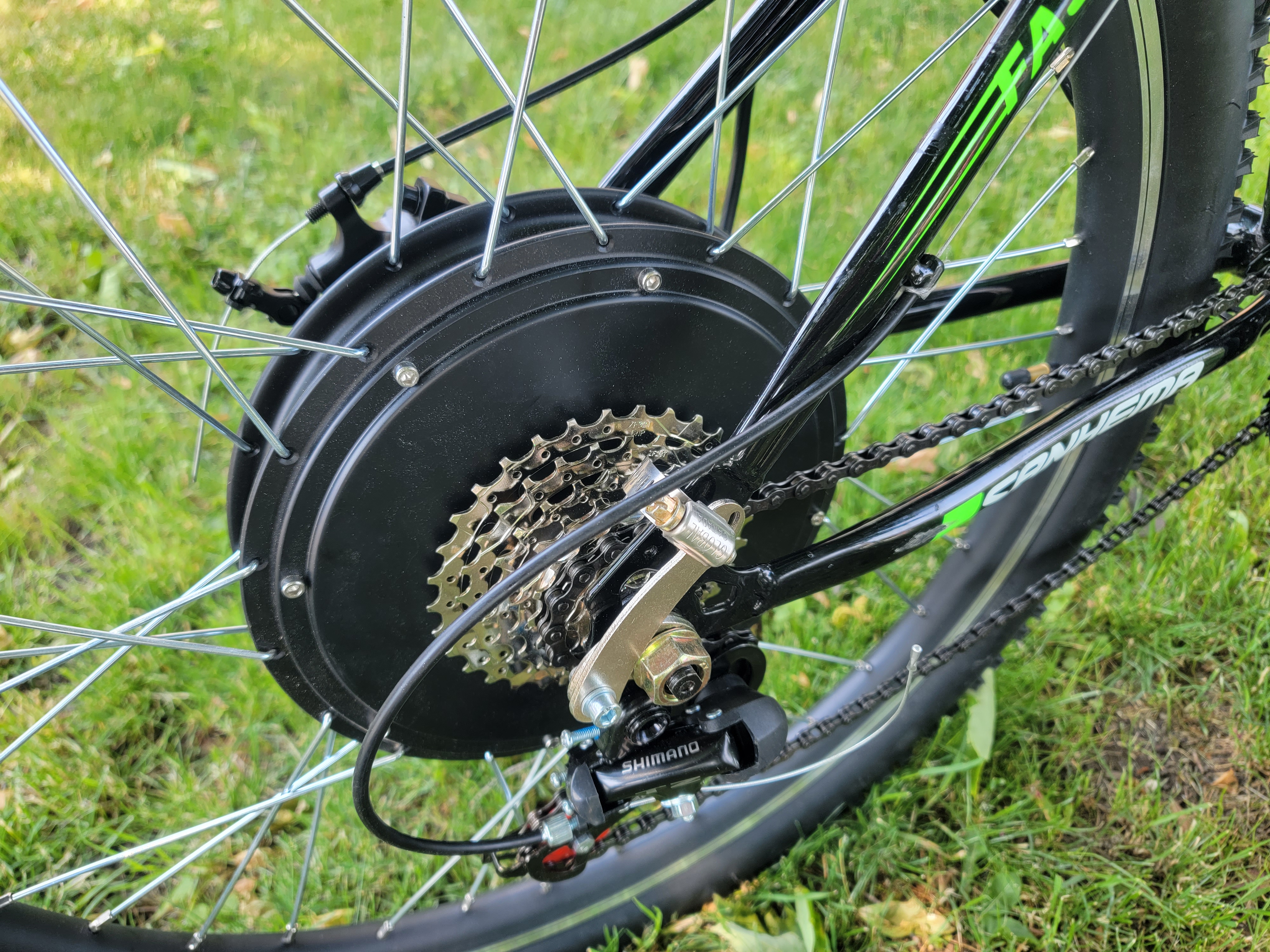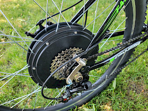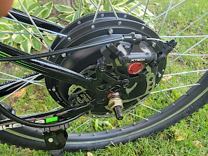 The electric motor, by the way, is a beast. This bike with its carbon steel frame is designed to handle the torque. I still wanted some extra torque protection and added a torque bar on the rear axle. You can see that at the left, just below.