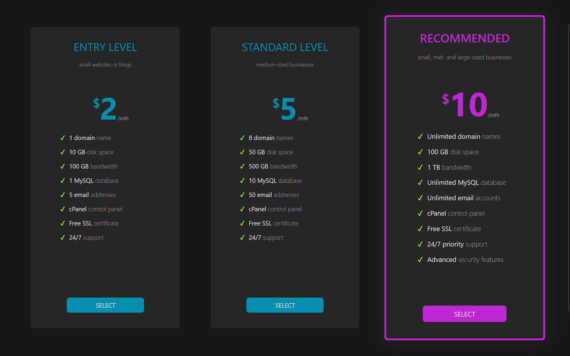 While researching over the past few days, I stumbled onto a site showing a pricing panel. I've seen these before, it's essentially three to five panels, each featuring a product or service and range from Basic to Platinum with price increases along the way, one being the recommended one. When you hover over each of the featured panel, it usually has a change in color, size ... something to indicate your hover status. And, of course, there is the CTA (Call-To-Action) button to launch you into buying mode.